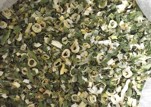 烘干:將甩干的蔥段攤放在烘篩中,裝在烘車層架上,送入干燥機烘干。干燥機在未進料前先行預熱升溫達60℃左右。烘干溫度控制在58~60℃,烘干時間6~7小時。產品含水量降到5%以下。